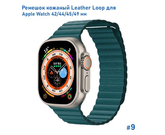 Ремешок кожаный Great Case Leather Loop для Apple Watch 42/44/45/49 мм, 225мм, на магните, зеленый (9)