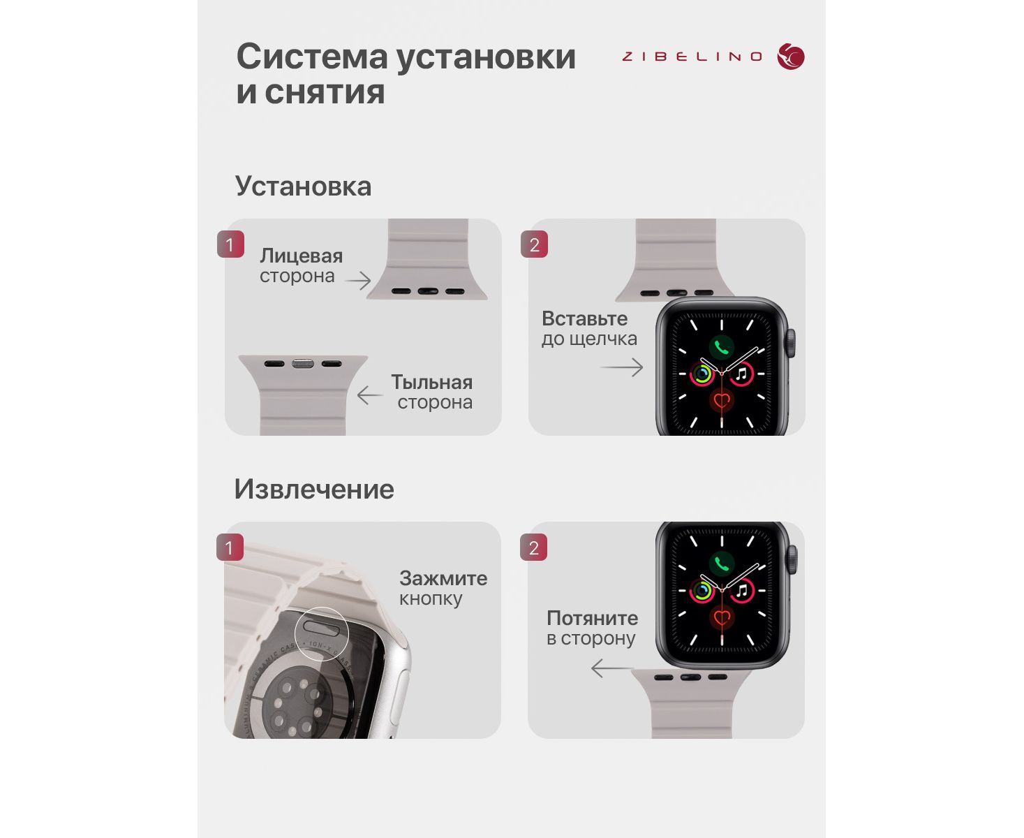 - Надежное крепление на руке: застежка pin-and-tuck (англ. «застежка-булавка») и магниты внутри ремня Эпл Вотч предотвращают расстегивание и обеспечивают идеальную посадку на запястье.