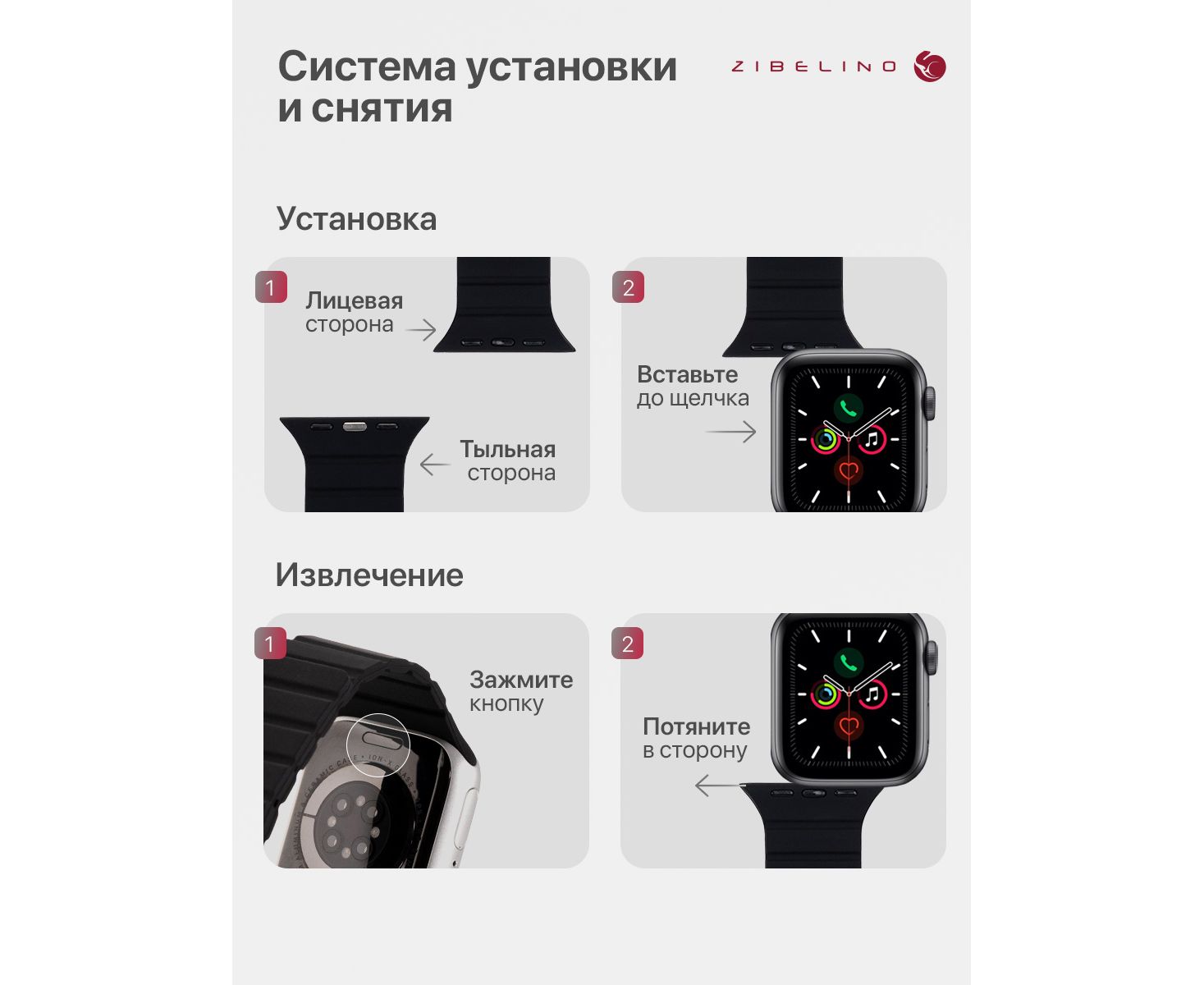 - Надежное крепление на руке: застежка pin-and-tuck (англ. «застежка-булавка») и магниты внутри ремня Эпл Вотч предотвращают расстегивание и обеспечивают идеальную посадку на запястье.