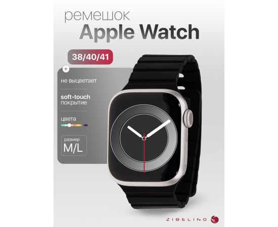 Ремешок магнитный силиконовый для Apple Watch 38mm, 40mm, 41mm (размер M/L) с застежкой штифтом, черный (Эпл Вотч 38 мм 40 мм 41мм)