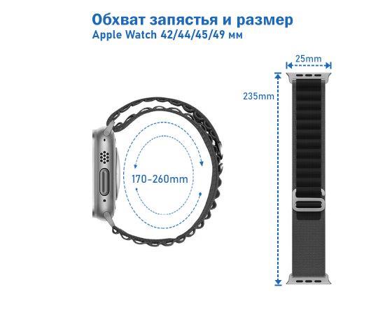 Ремешок для Apple Watch, является вершиной инновационного дизайна и инженерной мысли. Воплощая в себе непревзойденную прочность, использованный в его изготовлении нейлон обладает исключительной износостойкостью, что делает ремешок идеальным для активных людей, ценящих долговечность и надежность. Современная застежка не только плотно фиксирует часы на запястье, но и позволяет пользователю с легкостью настраивать размер, обеспечивая идеальную посадку в любых условиях.Текстура ремешка продумана до мелочей и предназначена для обеспечения максимального комфорта при длительном ношении. Нейлоновый материал обеспечивает вентиляцию кожи, предотвращая раздражение и потоотделение. Элегантный и в то же время сдержанный дизайн ремешка Alpine Loop делает его не только функциональным аксессуаром для часов, но и стильным дополнением к вашему гардеробу, подчеркивая вашу индивидуальность и придавая образу завершенность.