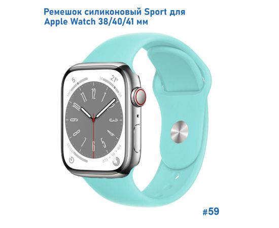 Ремешок силиконовый Great Case Sport для Apple Watch 38/40/41 мм, 225мм, на кнопке, бирюзовый (59)