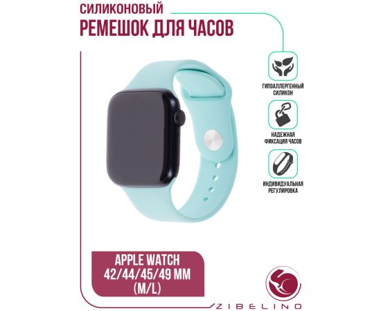 Ремешок силиконовый для смарт часов Apple Watch 42мм, 44мм, 45мм, 49мм (размер M/L) бирюзовый (Эпл Вотч 42мм 44мм 45мм 49мм)
