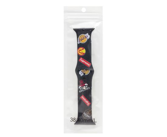 Силиконовый браслет ApW01 для Apple Watch (эпл вотч) 38/40/41 мм/ сменный с забавным принтом, Supreme / цвет, черный