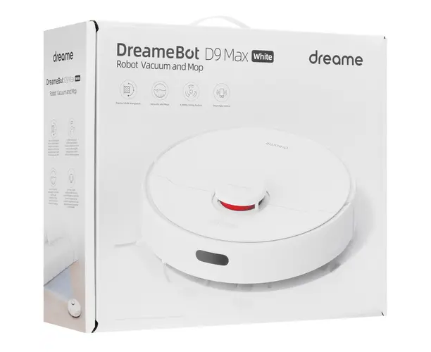 Робот-пылесос Dreame D9 Max в привлекательном белом корпусе готов взять на себя обязанности по выполнению сухой и влажной уборки. Это особенно актуально для людей, которые не любят заниматься ей самостоятельно. Все загрязнения прибор собирает в емкость вместительностью 0.57 л.