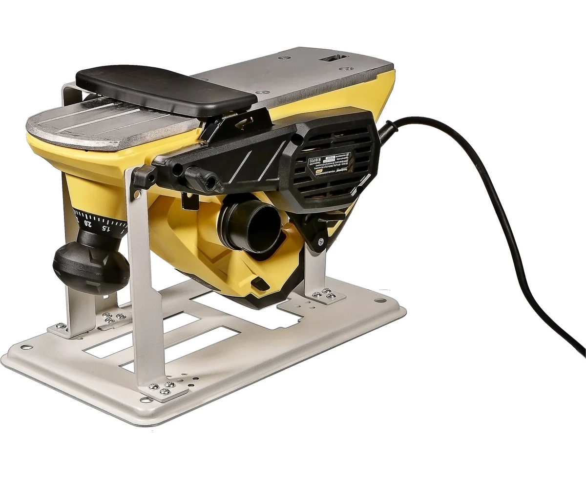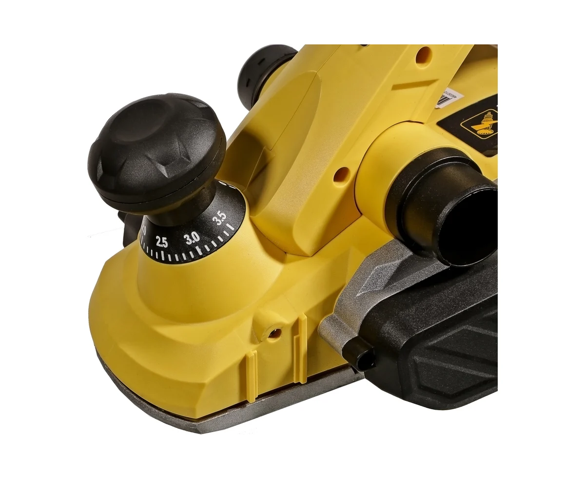 Функционал рубанка предусматривает возможность выборки четверти в диапазоне до 15,5мм, а направляющие пазы на подошве позволяют снимать фаску.