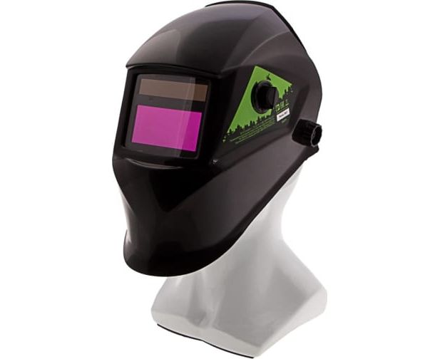 Защитный лицевой щиток, или маска сварщика, Сибртех Ф5 89177 с автозатемнением, упакованный в картонную коробку, закрывает глаза, лицо и шею мастера от света дуги, искр, ультрафиолета и горячих брызг. Предохраняет также от ожогов вследствие высоких температур во время сварочных работ.
