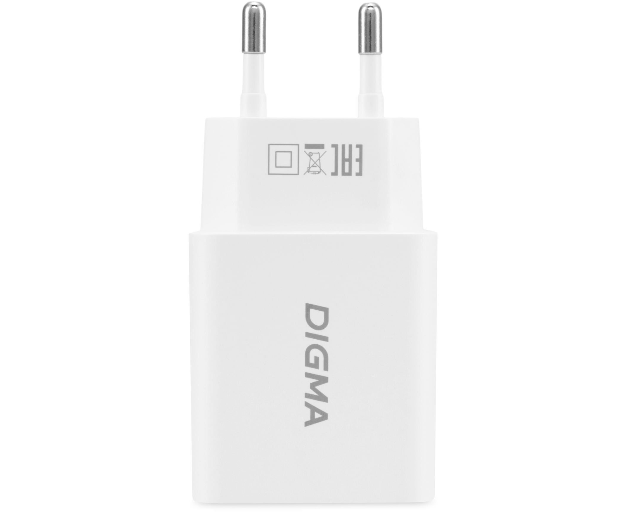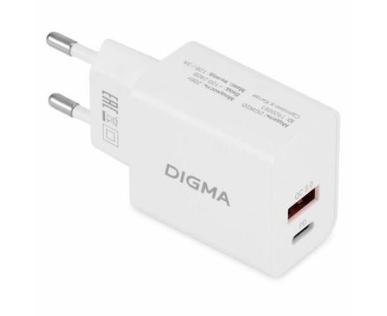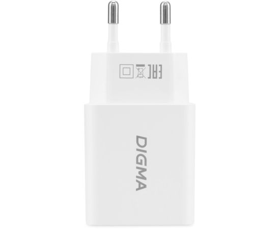 Сетевое зарядное устройство Digma DGW2D 20W 3A+1A (PD+QC) USB-C/USB-A универсальное белый (DGW2D0F110WH)