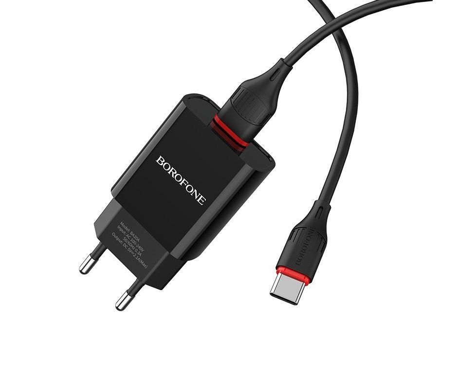 Сетевой адаптер Borofone BA20A Sharp single port charger Type-C (EU) - Черный