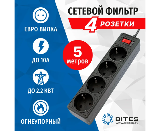 Сетевой фильтр 5bites Garda SP4B-550 4S/3*0.75mm2/5M/Black