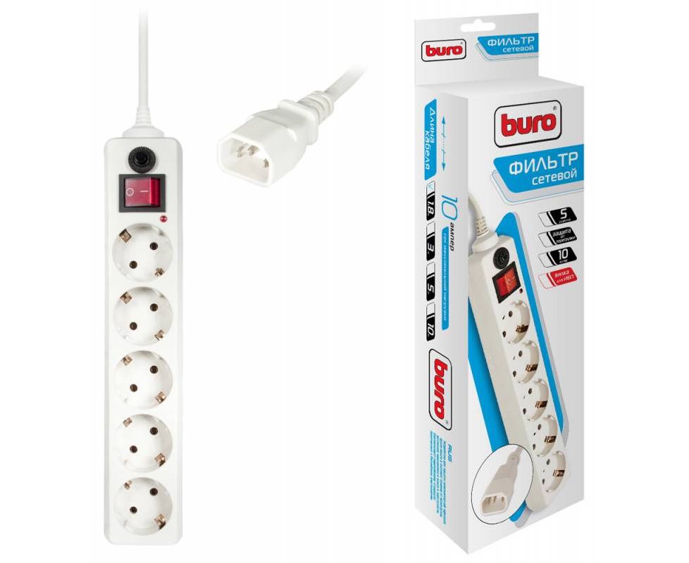 Сетевой фильтр Buro 500SH-1.8-UPS-W 1.8м (5 розеток) белый
