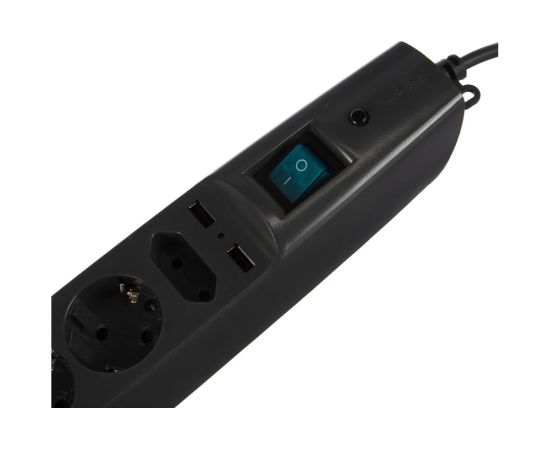 Технические характеристики ЭРА SFU-5es-2m-B с/з, 3x1, с/штор, с/выкл, 5гн+2xUSB, 2м, кор, черный C0043326