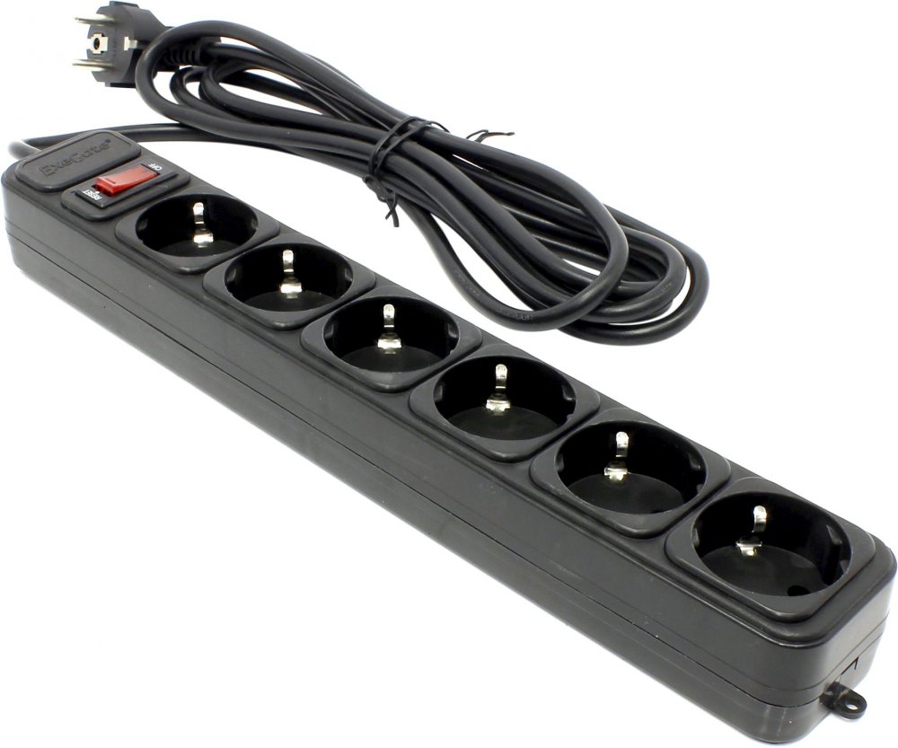 Сетевой фильтр ExeGate SP-6-3B EX119393RUS черный (6 евророзетки с заземлением, 3м, защита от перегрузки, выключатель с подсветкой)