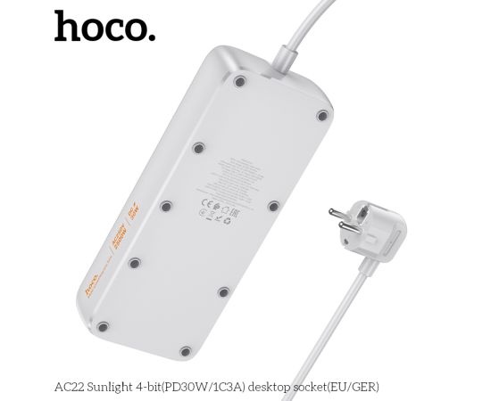 Сетевой фильтр HOCO AC22 Sunlight 4-bit (PD30W/1C3A) (L=1.5M) (белый)