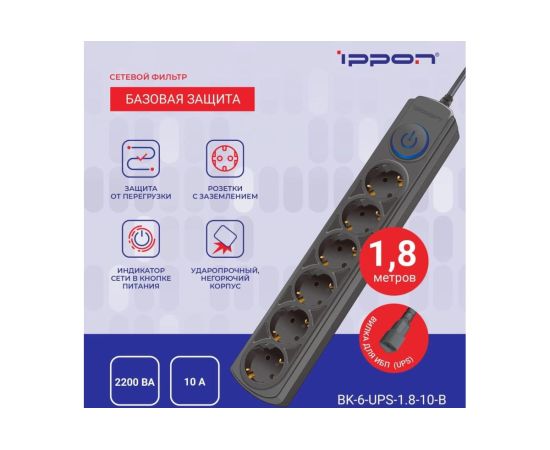 Сетевой фильтр Ippon NF-EU-1.8-10 1.8м 6 розеток черный