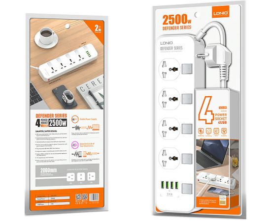 Сетевой фильтр LDNIO SC4408 (LD B4610) 2м/4 розетки/White