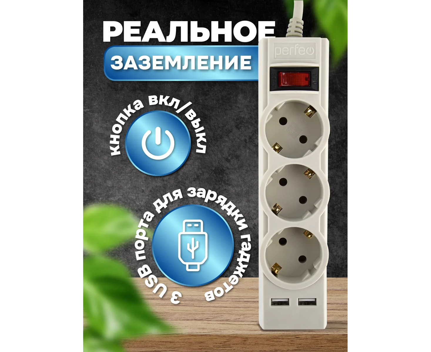 Количество гнезд/розеток 3 (евростандарт с заземлением) + 2 USB