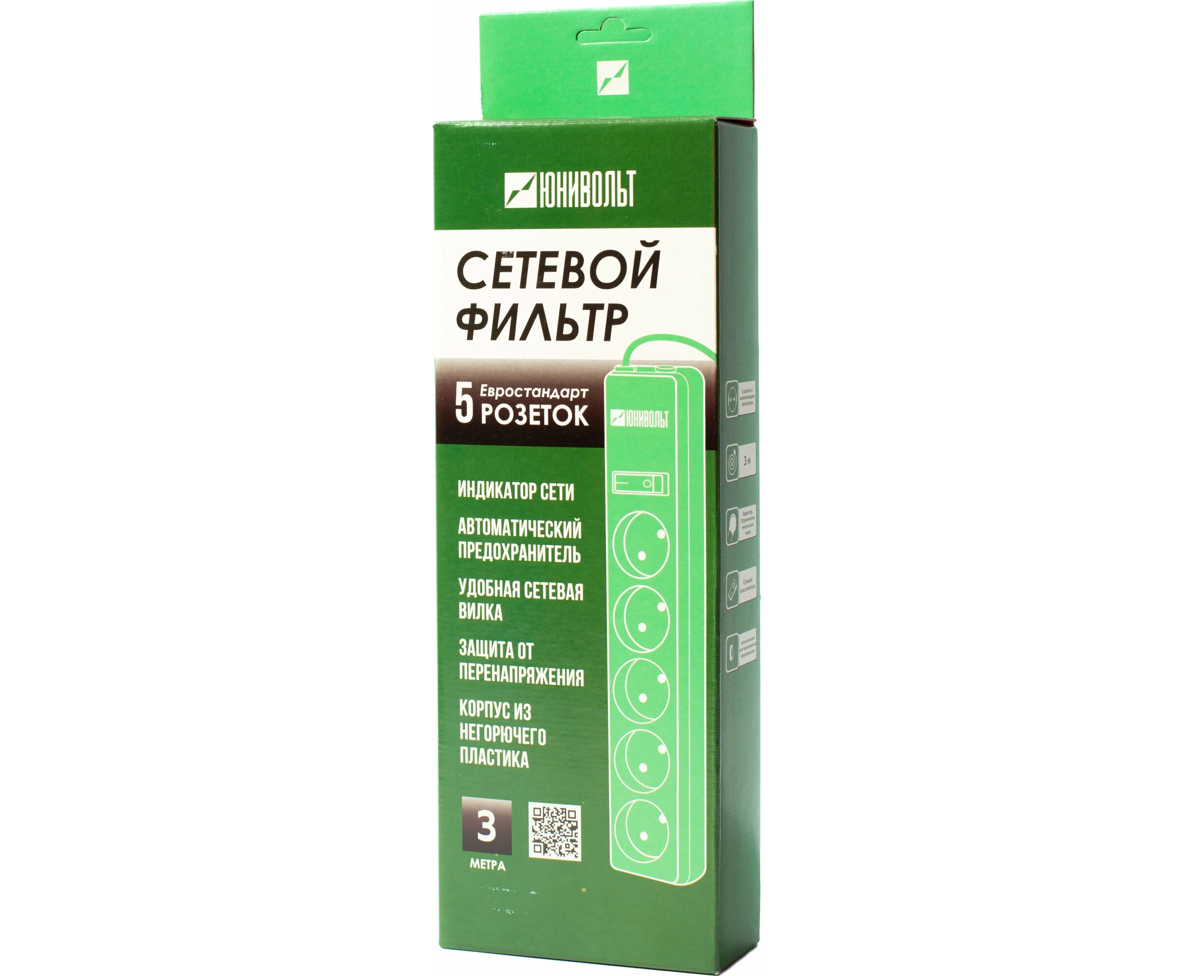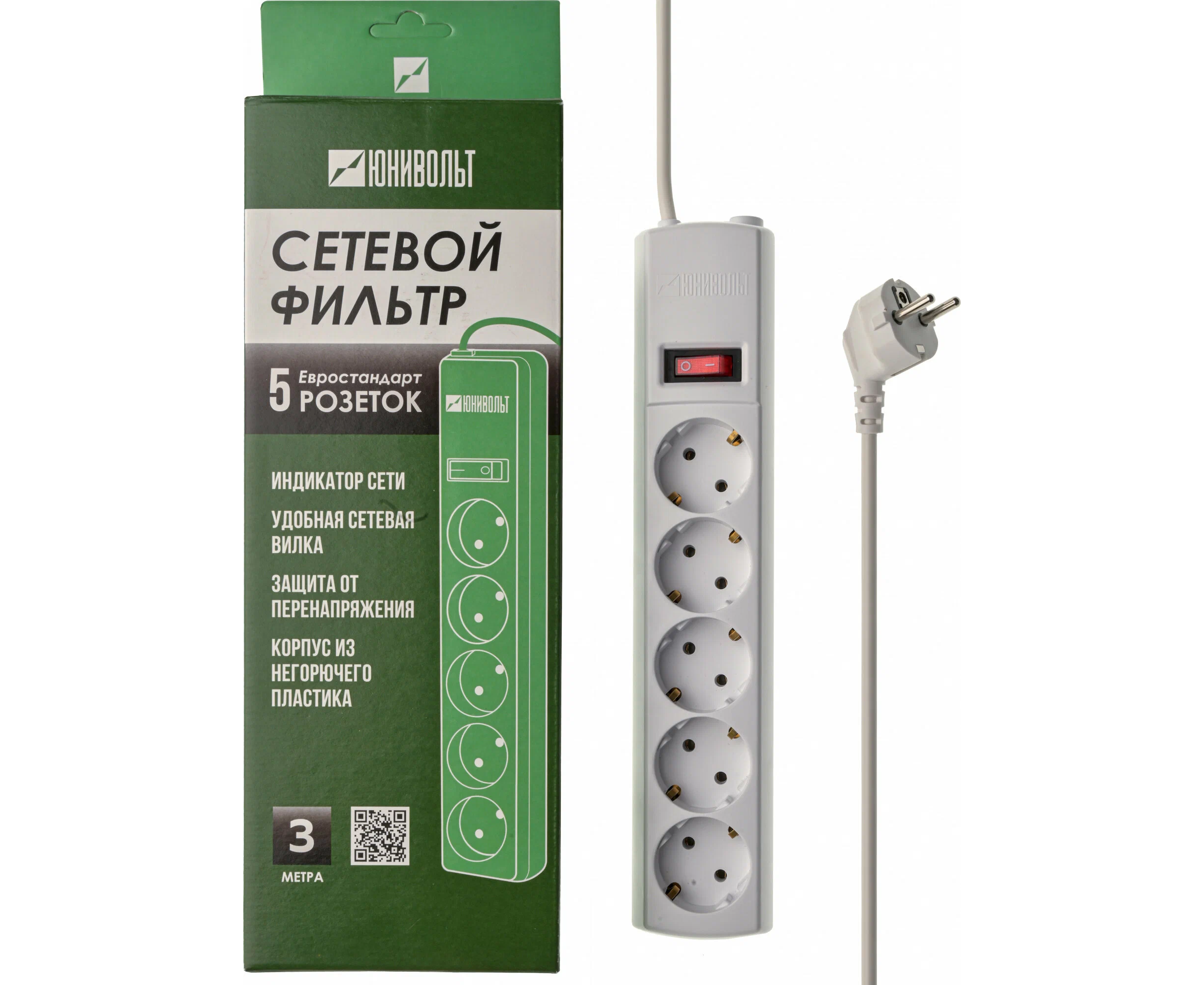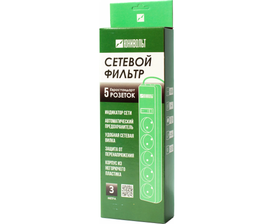 Сетевой фильтр Юнивольт 00-00000393 5м 2 розетки белый коробка