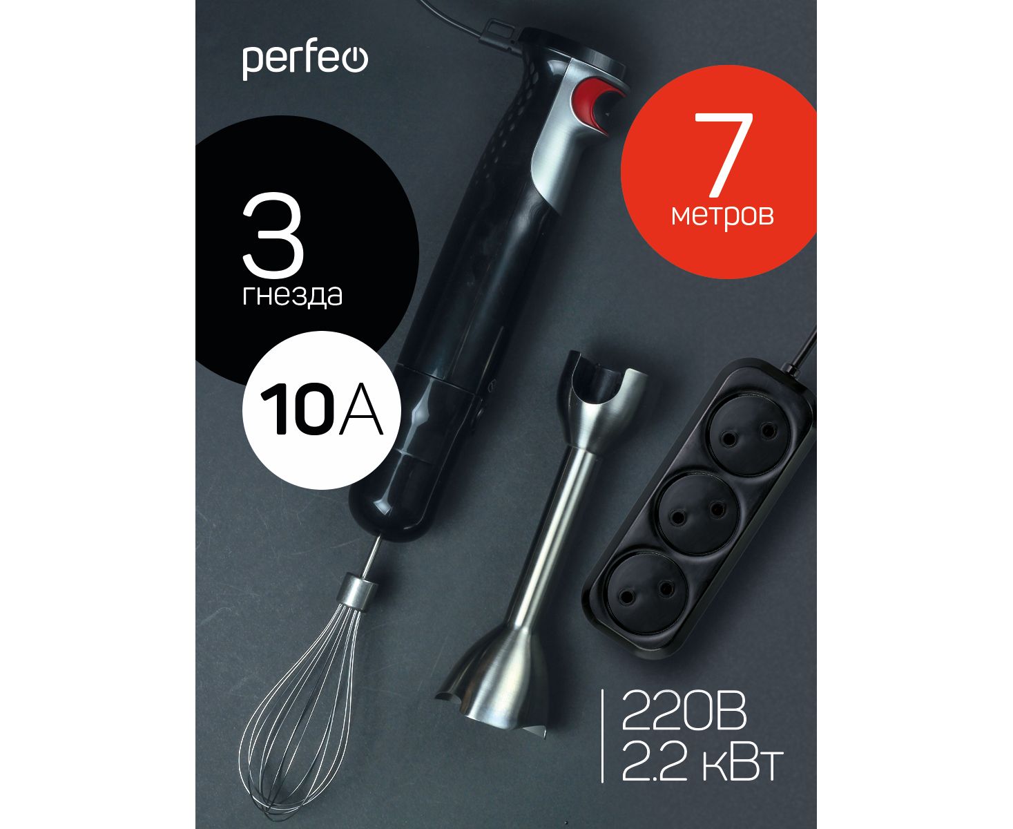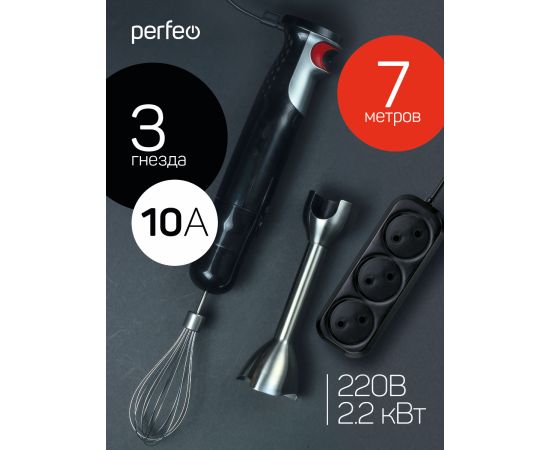 Сетевой удлинитель Perfeo "RU POWER", 7,0м, 3 розетки, без заземления, (Р16-012), чёрный