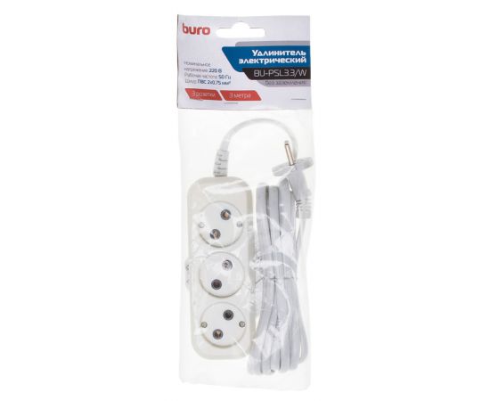 Сетевой удлинитель Buro BU-PSL3.3/W 3м (3 розетки) белый