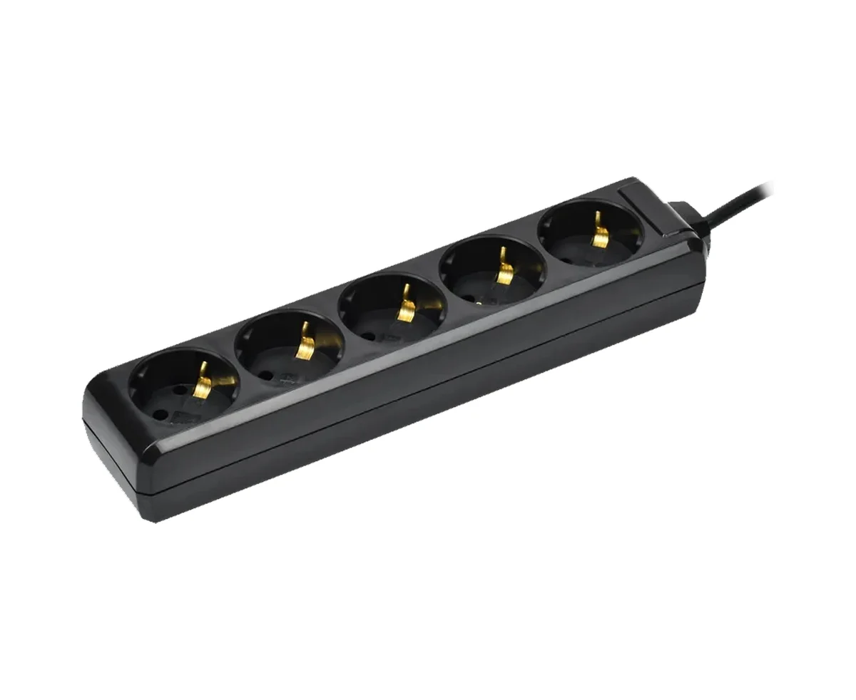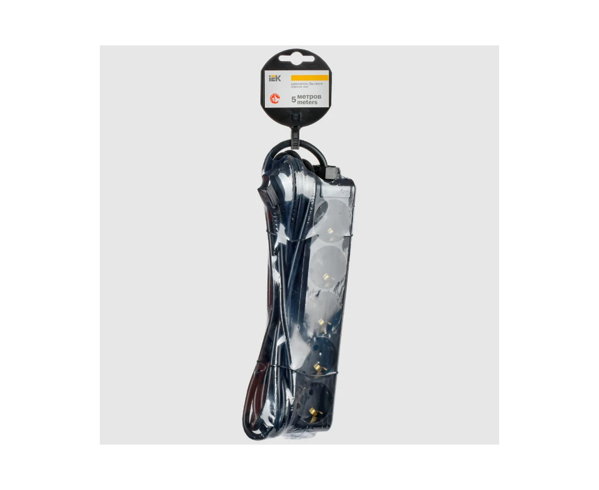 Сетевой удлинитель IEK WYP10-10-05-03-Z-K02-G У05 3м (5 розеток) черный (пакет ПЭ)
