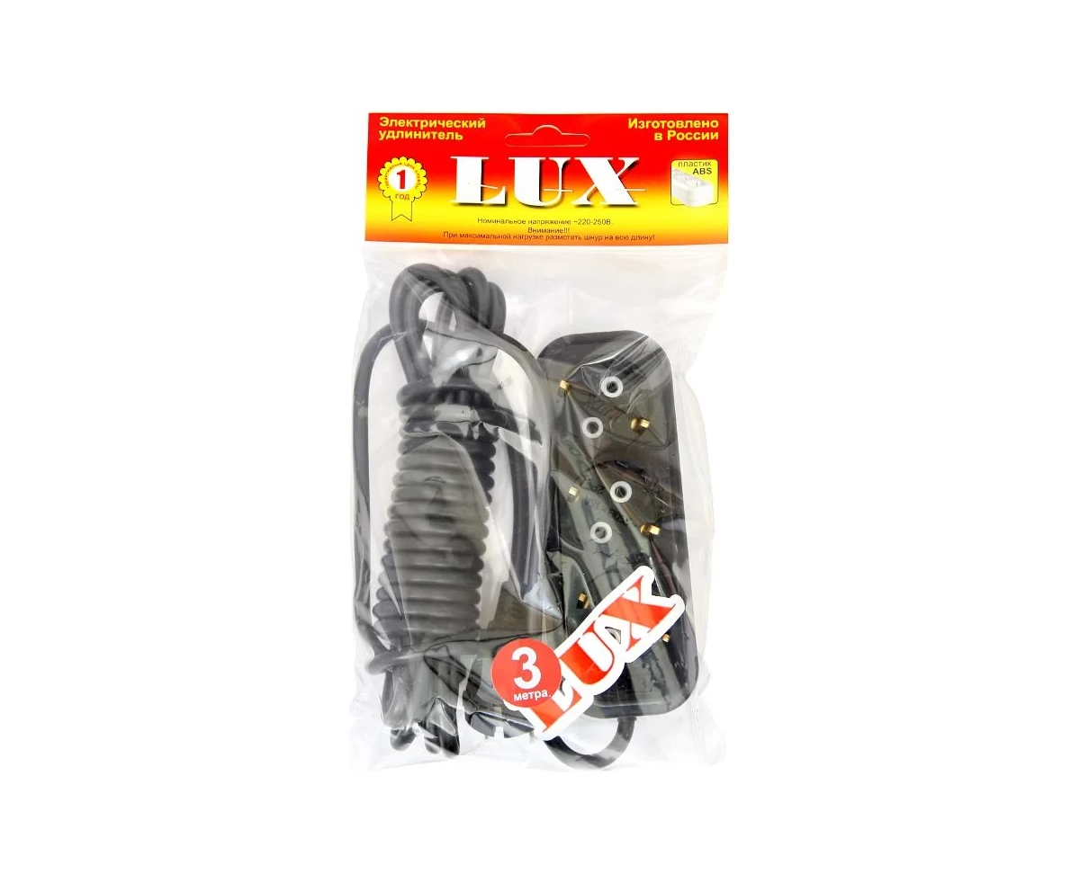 Сетевой удлинитель LUX У3-Е-03 3-местный с з/к 250В/16а/3м черный