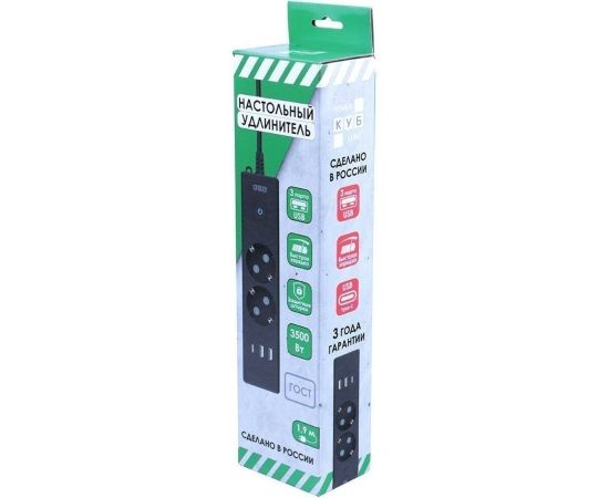 Сетевой удлинитель Power Cube PC-5B-2M 1.9м (2 розетки) черный (коробка)