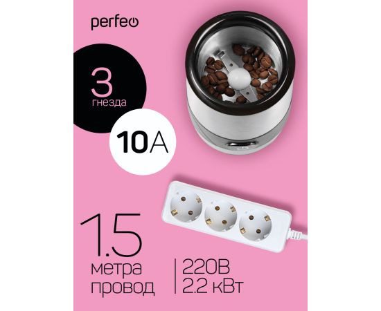 Сетевой удлинитель Perfeo "POWERMATE", 1,5м, 3 розетки, с заземлением, (PF-PE-3/1,5-W), белый