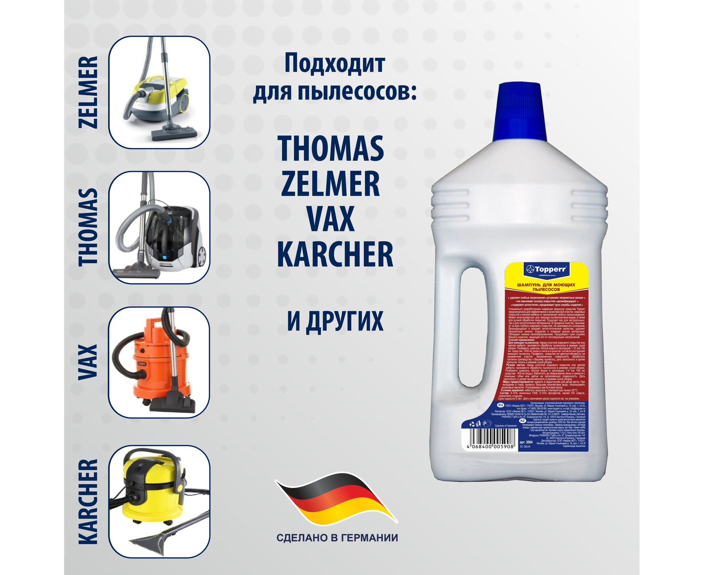 Шампунь для моющих пылесосов Topperr 3004 1000мл, Испания