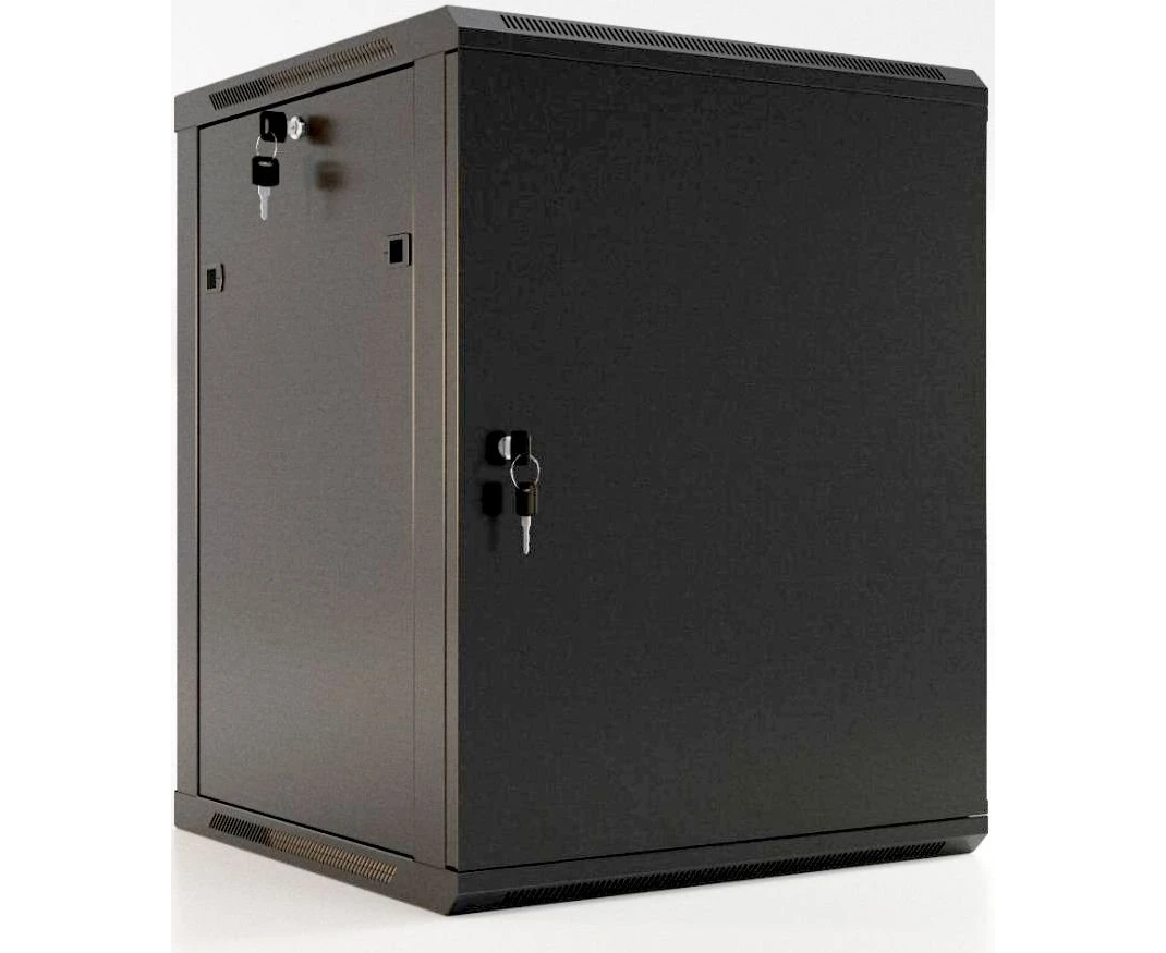 Шкаф коммутационный Hyperline (TWB-0945-SR-RAL9004) настенный 9U 600x450мм пер.дв.стал.лист 60кг черный 275мм 180град. 500мм IP20 сталь