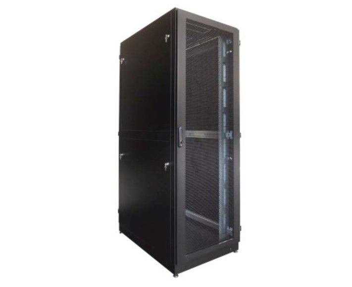 Шкаф серверный ЦМО ШТК-М-42.6.12-48АА-9005 напольный 42U 600x1250мм пер.дв.перфор. задн.дв.перфор.2-хст. направл.под закл.гайки 1000кг черный 1050мм 1