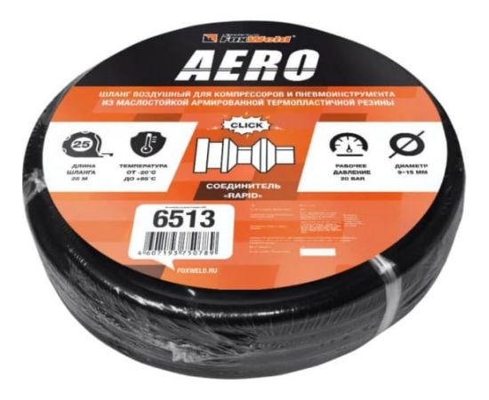 Шланг воздушный с фитингами рапид Foxweld Aero 6513 9x15мм 25м