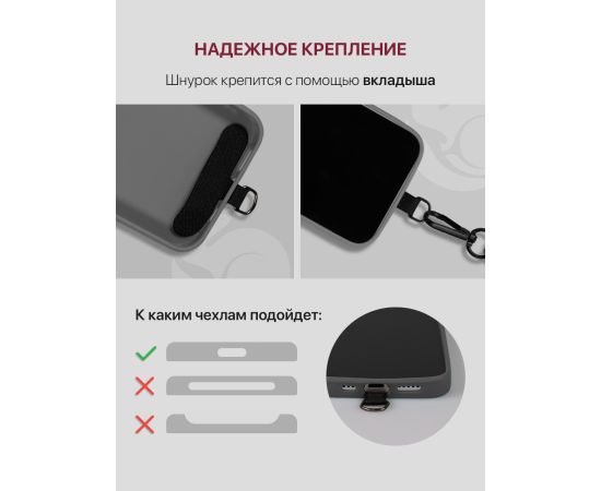Унисекс дизайн и разные варианты цветов делают шнурок для смартфона отличным вариантом как для мужчин, так и для женщин. Также его можно использовать и как детский шнурок для ключей и телефона на шею.