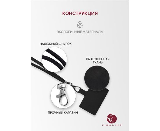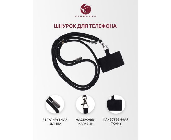 Шнурок универсальный: на шею для телефона, для ключей, для бейджа, с карабином, для смартфона, универсальный, черный