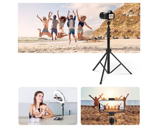 Устойчивый штатив Jmary MT-38 поможет вам снять идеальные фотографии и видеоролики. Это универсальна модель, которая подойдет для студийной фото, видеотехники и держателей с разъемом для крепления 1/4". На стойке можно зафиксировать фотоаппарат, смартфон или камеру, установить кольцевую светодиодную лампу или микрофон. Положение гаджета можно регулировать и выбирать удачный ракурс для съемки, чтобы вы в кадре выглядели идеально. С таким аксессуаром больше не придется переснимать кадр за кадром из-за дрожащих рук. В комплекте со штативом идет держатель для телефона с креплением для вспышки или микрофона. Преимущества напольного штатива для фото/видеокамер: Стойка сделана из надежного и износостойкого материала: металла. Ее вес составляет всего 430 граммов. На нее можно устанавливать гаджеты весом до 1 кг. Благодаря телескопической конструкции высоту штатива можно изменять от 51,5 см до 168 см. У Jmary MT-38 три ноги. Они раздвигаются и фиксируются в одном положении. На каждой ножке имеется прорезиненый наконечник, поэтому стойка устойчиво стоит на любой поверхности, а не скользит. Сверху штатива находится стандартный винт 1/4". На него можно закрепить раздвижной зажим для телефона из комплекта, фотоаппарат или видеокамеру, если в них предусмотрена резьба.