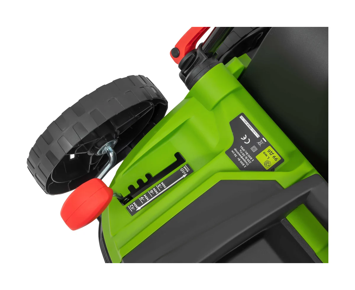 Ширина обработки составляет 36 см, что ускоряет процесс работы на больших участках. Текстильный травосборник объемом 45 литров обеспечивает удобство сбора травы, а система валиков с ножами и зубьями способствует качественной аэрации почвы. Легкий пластиковый корпус и небольшой вес делают скарификатор удобным в использовании и транспортировке. Максимальная мощность 2000 Вт, номинальная мощность 1800 Вт.