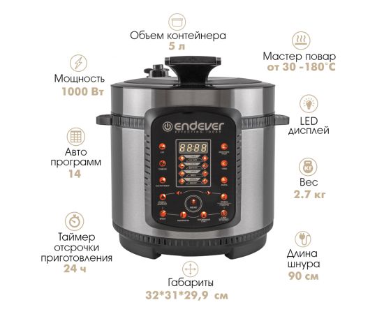 Корпус из нержавеющей стали гарантирует долговечность и надежность прибора, стильный дизайн будет гармонично дополнять интерьер вашей кухни. Скороварка-мультиварка Endever Vita-99 - это практичный прибор, который обязательно понравится каждому, кто хочет сэкономить время и при этом получить восхитительные блюда!