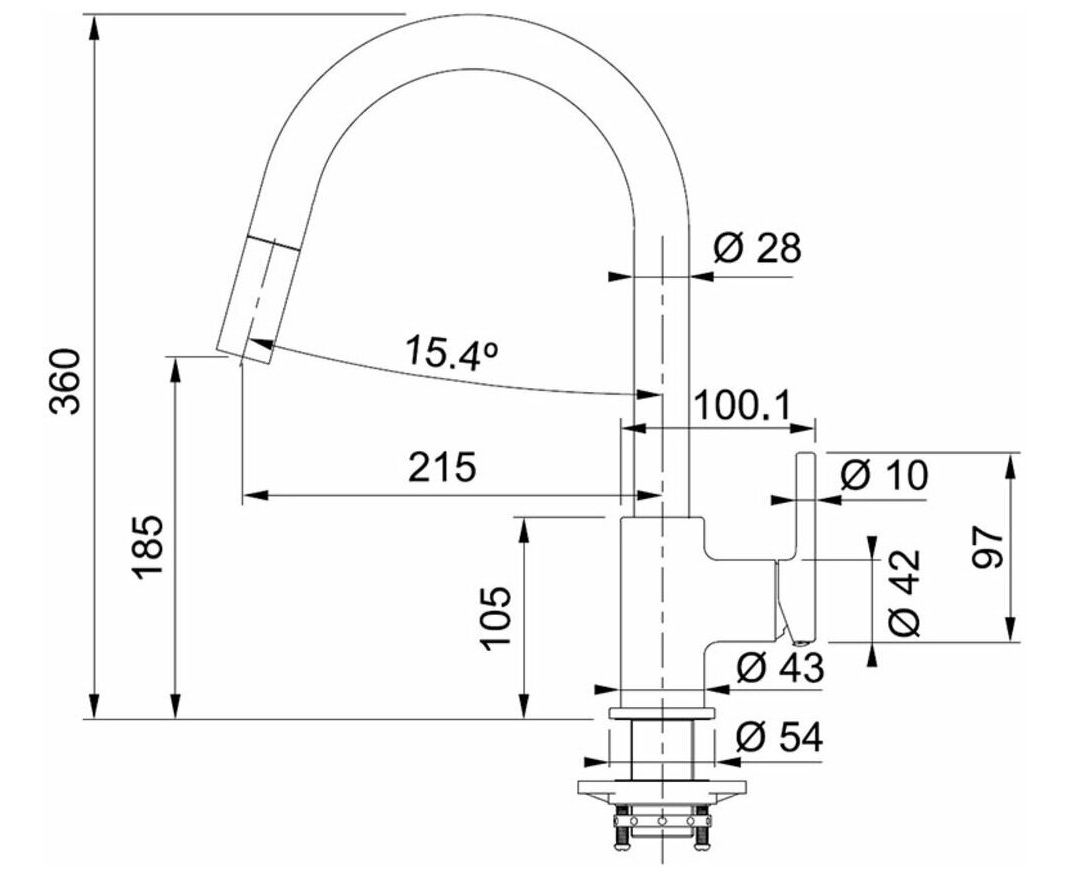 Высота излива 158 мм
