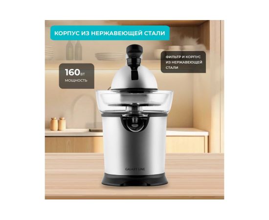 Электрическая соковыжималка Galaxy LINE GL 0854 — идеальное решение для любителей свежевыжатых цитрусовых соков. Выполненная в стильном серебристом корпусе, она оснащена мощным мотором на 160 Вт, который обеспечивает быстрое и эффективное отжимание сока. Корпус и фильтр изготовлены из прочной нержавеющей стали, что гарантирует долговечность и надежность устройства.