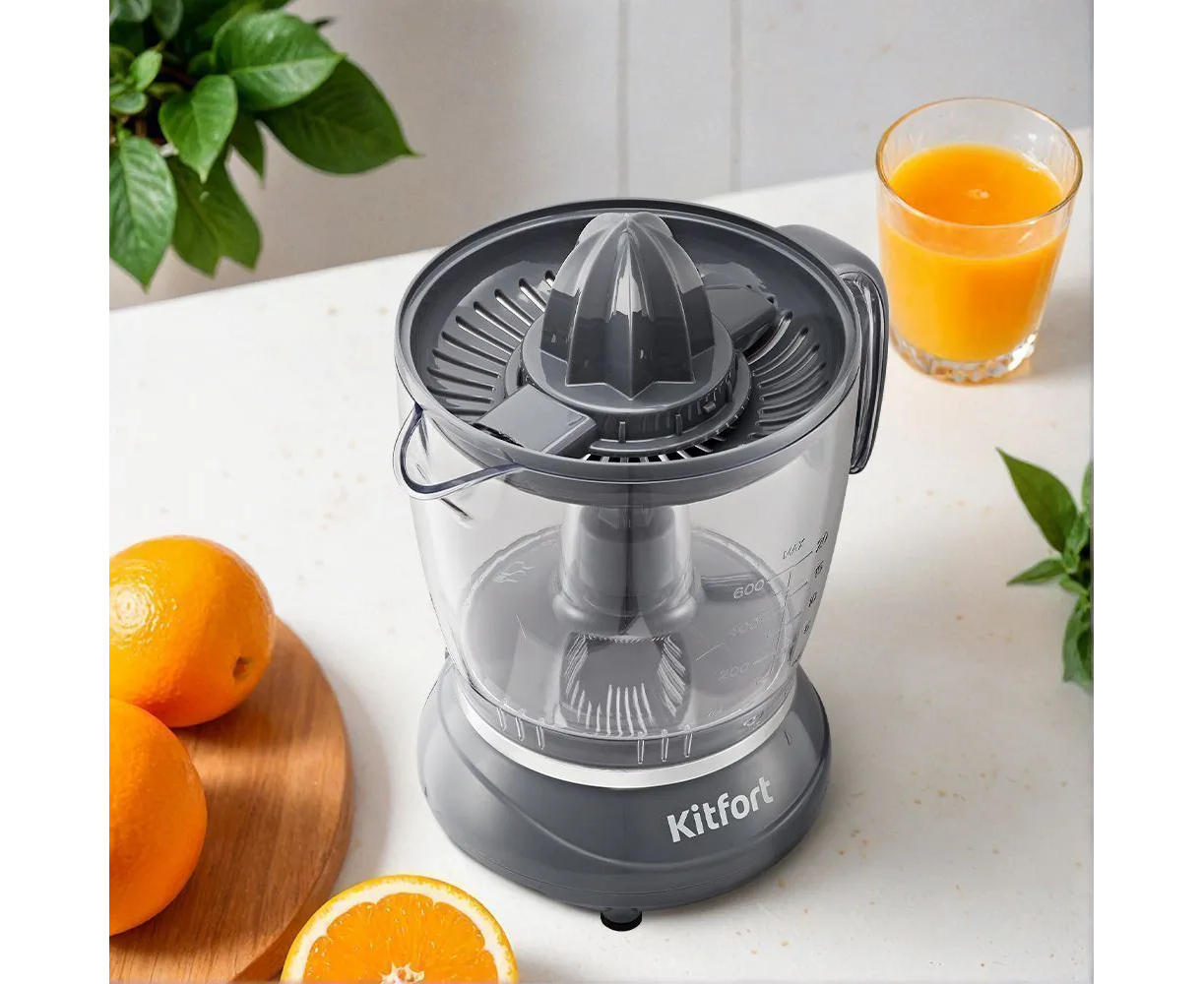 Соковыжималка КТ-1177 — идеальный выбор для приготовления сока из цитрусов. Она легко справится с лимонами, грейпфрутами, апельсинами и другими плодами. Главное преимущество — вам не нужно снимать кожуру, достаточно разрезать фрукт пополам.