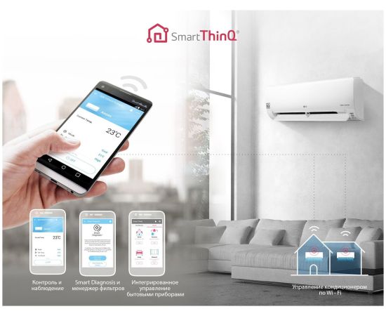 Линейка доступных современному потребителю инверторных настенных сплит-систем ProCool от достойной производственной компании LG поможет поддерживать в помещениях жилого (или коммерческого) назначения оптимальный климатический режим. Оборудование из данной серии оснащено всем необходимым функционалом, без которого невозможно представить современные кондиционеры. Это и система самодиагностики неисправностей, и автоматический режим работы, а также автовключение в случае отключения электропитания и другие функции.
