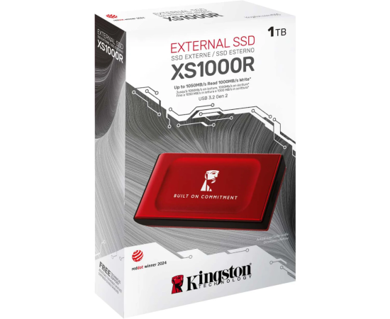 SSD Kingston XS1000R BOC (SXS1000R/1000GA) 1TB, V-NAND, USB 3.2 Gen 2х2 Type-C R/W - 1050/1000 MB/s красный