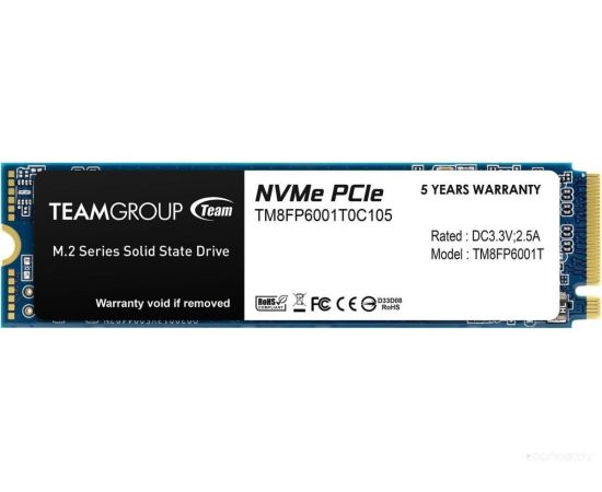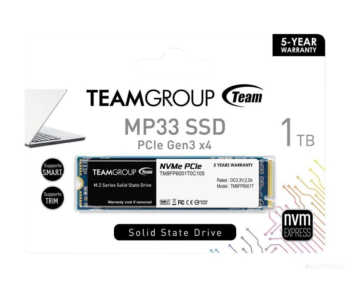 SSD Team Group MP33 (TM8FP6001T0C101) M.2 2280 1TB PCIe Gen3x4 with NVMe, 1800/1500, IOPS 220/200K, MTBF 1.5M, 3D TLC, 600TBW, 0,33DWPD, RTL