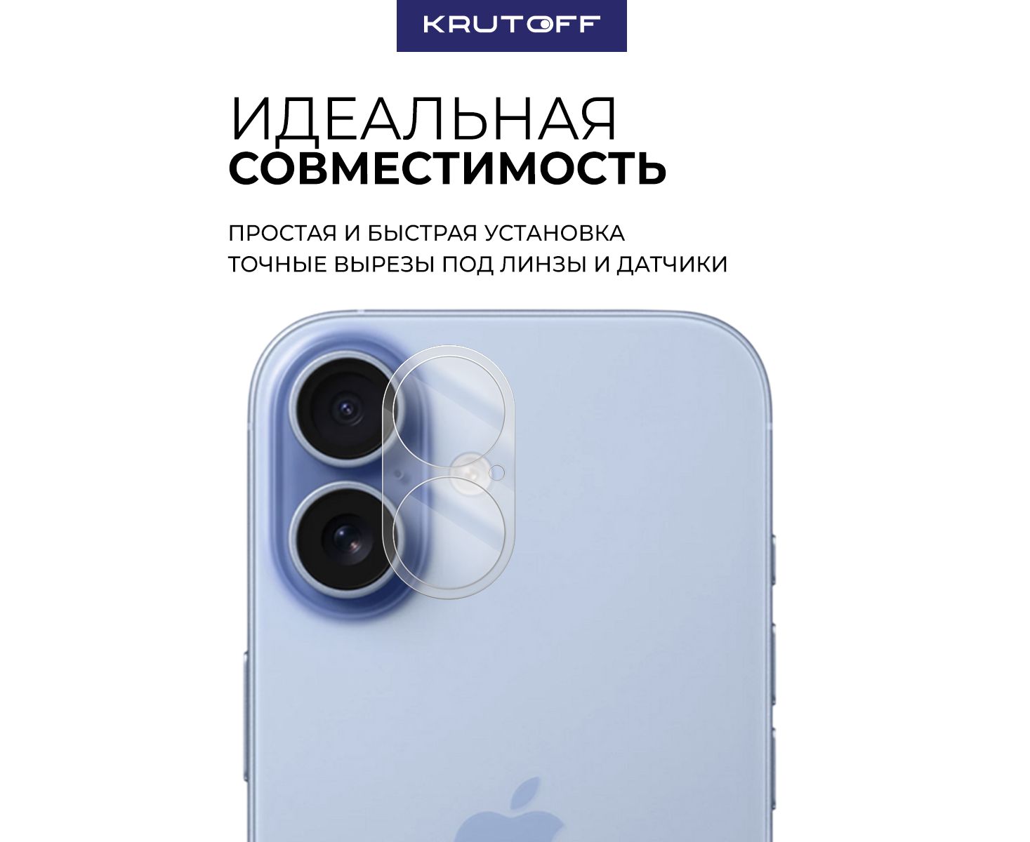 Стекло защитное Full Glue Premium Krutoff для камеры iPhone 17 белые линзы