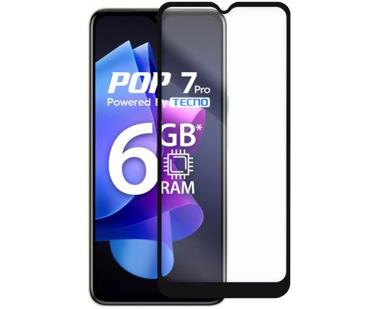Стекло защитное Full Glue Premium Krutoff для TECNO POP 7/7 Pro черное
