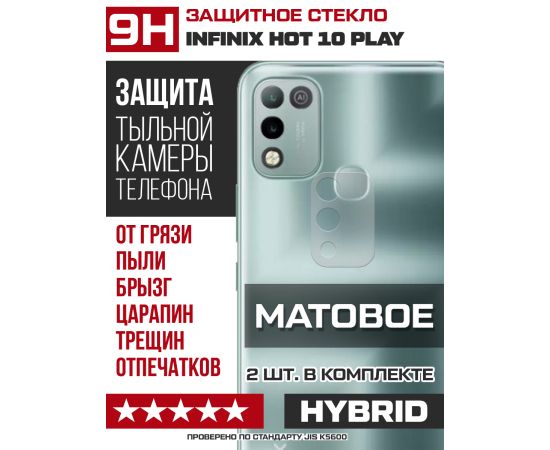 Стекло защитное гибридное МАТОВОЕ Krutoff для камеры INFINIX Hot 10 Play (2 шт.)