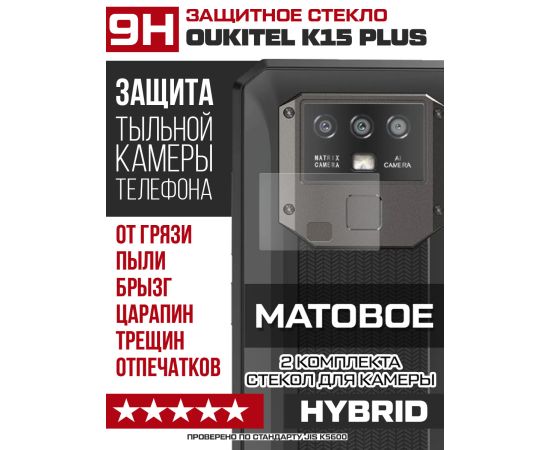 Стекло защитное гибридное МАТОВОЕ Krutoff для камеры Oukitel K15 Plus (2 шт.)