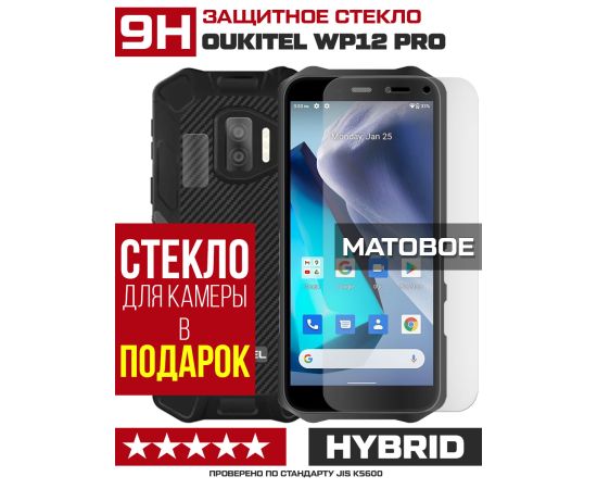 Стекло защитное гибридное МАТОВОЕ Krutoff для Oukitel WP12 Pro + защита камеры (2 шт.)