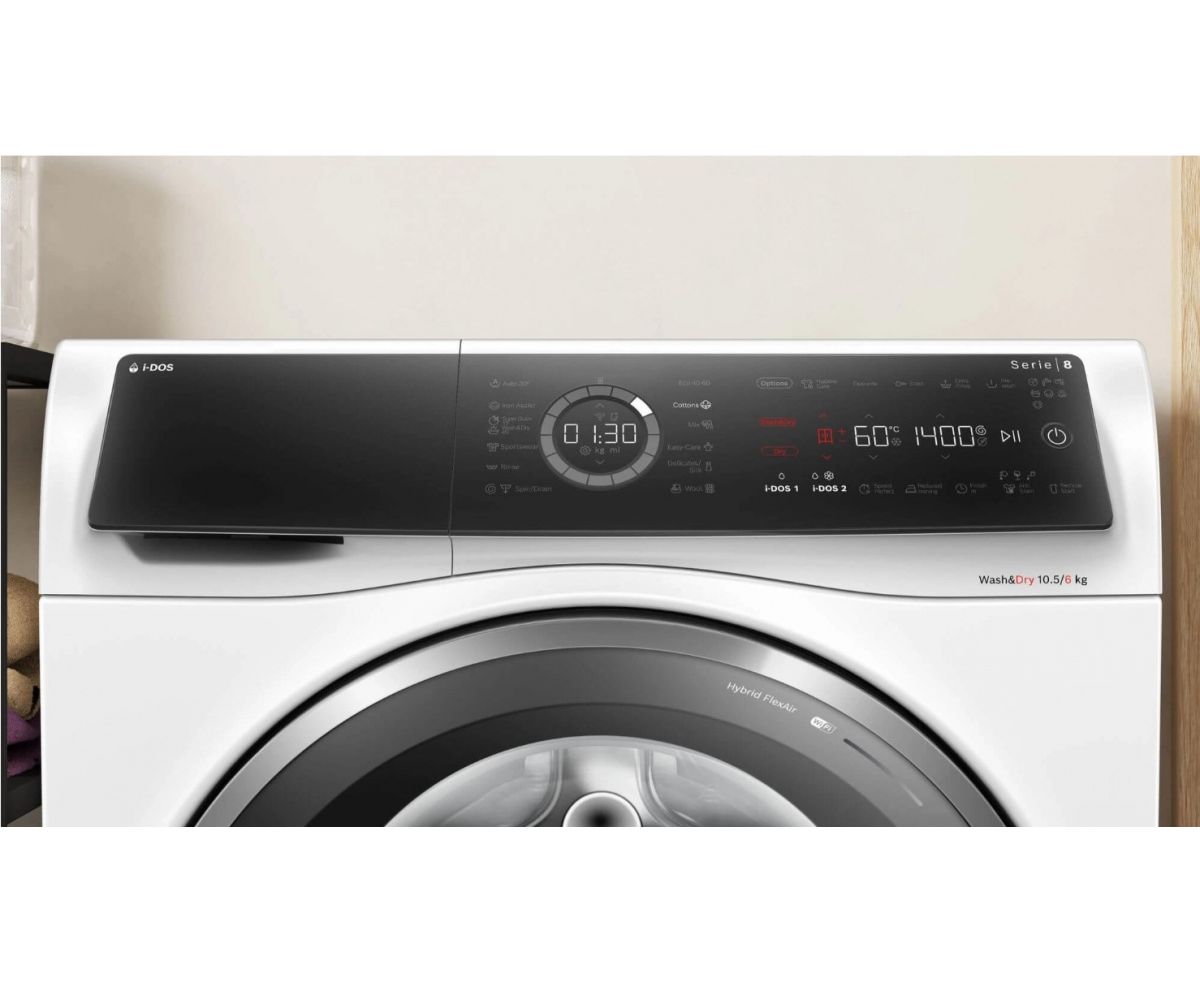 Стирка и сушка: стирайте и сушите до 6 кг белья за раз или стирайте до 10.5 кг за раз.