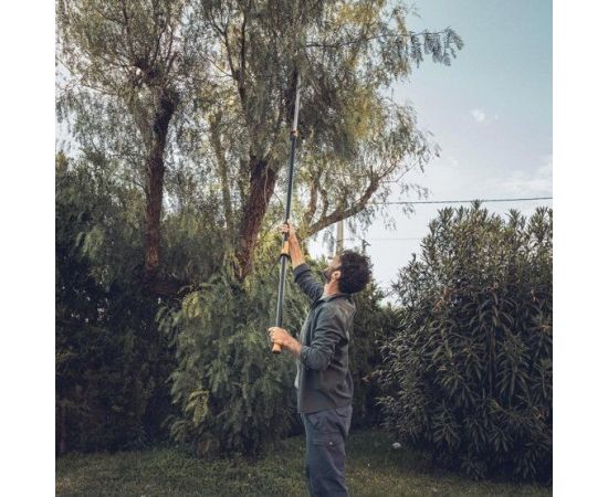 Описание: С помощью этого инструмента Вы легко обойдетесь без лестницы даже в самых труднодоступных участках. Режущий механизм создает усилие, которого достаточно, чтобы перерезать даже самые жесткие ветви без дополнительных усилий. Длина рукоятки регулируется в диапазоне от 2,4 м до 4 м